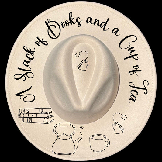 Books & Tea Wide Brim Hat Burning Design | Cool Moon Designs
