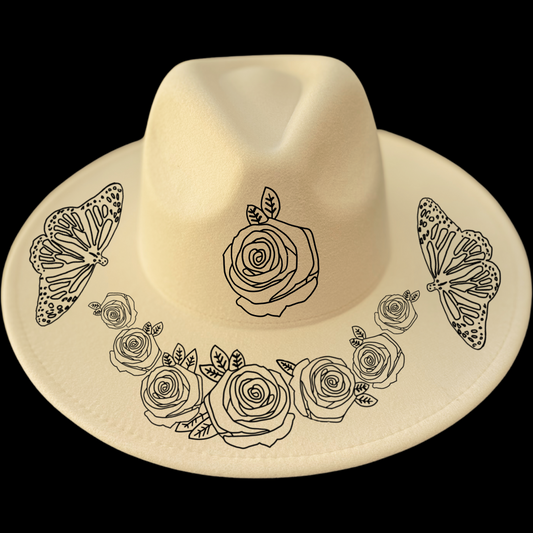 Butterflies & Roses Wide Brim Hat Burning Design | Cool Moon Designs