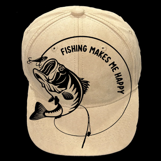 Fishing Makes Me Happy Baseball Cap Hat Burning Design SVG PNG
