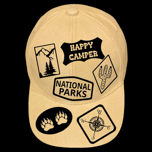 Faux Camping Patch Baseball Cap Hat Burning Design SVG PNG