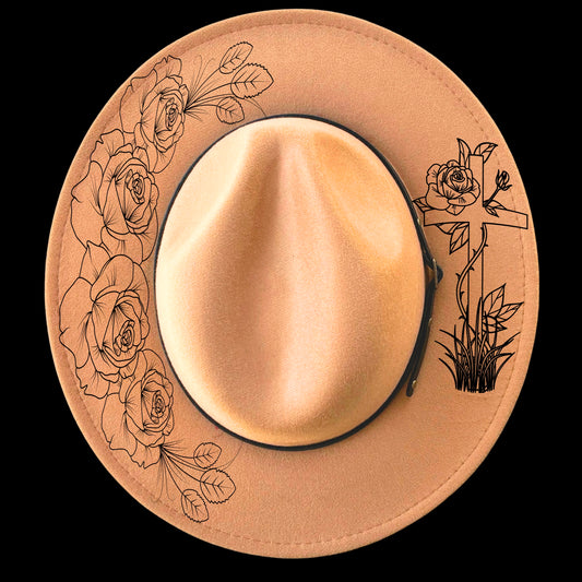 Cross And Roses Narrow Brim Hat Burning Design SVG PNG