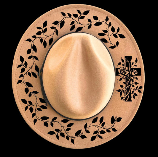 Cross Vine Narrow Brim Hat Burning Design SVG PNG