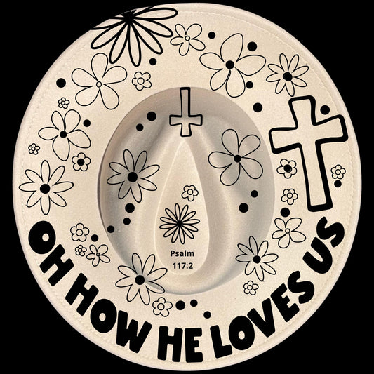 Oh How He Loves Us Groovy Wide Brim Hat Burning Design SVG PNG
