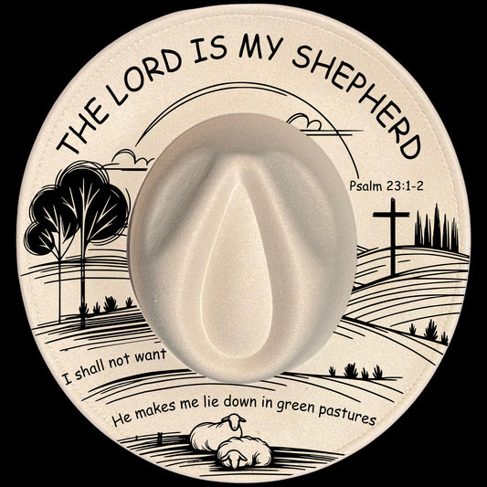 He Makes Me Lie Down Wide Brim Hat Burning Design SVG PNG