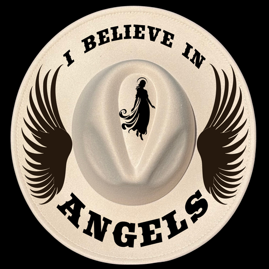 I Believe In Angels | Wide Brim Hat Burning Design | Cool Moon Designs