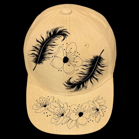 Flowery Feathers Baseball Cap Hat Burning Design SVG PNG