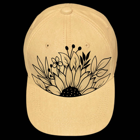 Sunflower Bouquet Baseball Cap Hat Burning Design SVG PNG