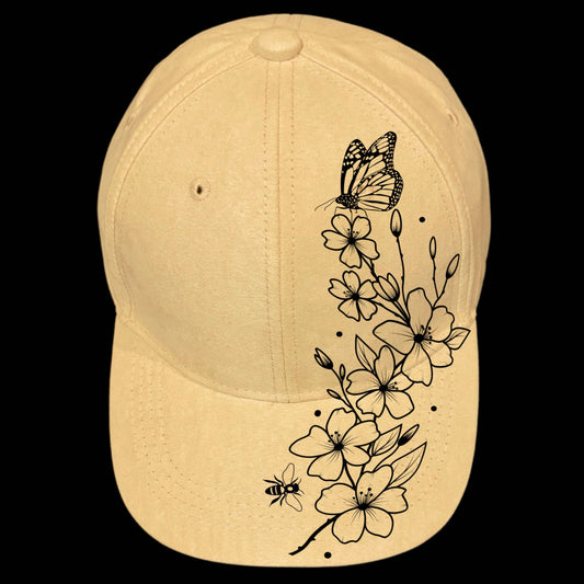 Cherry Blossoms Butterfly Baseball Cap Hat Burning Design SVG PNG