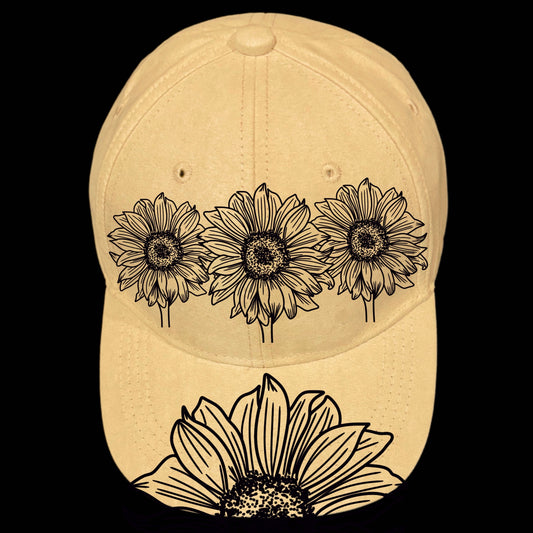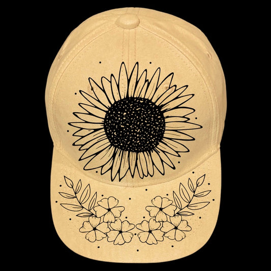 Sunflower Floral Baseball Cap Hat Burning Design SVG PNG