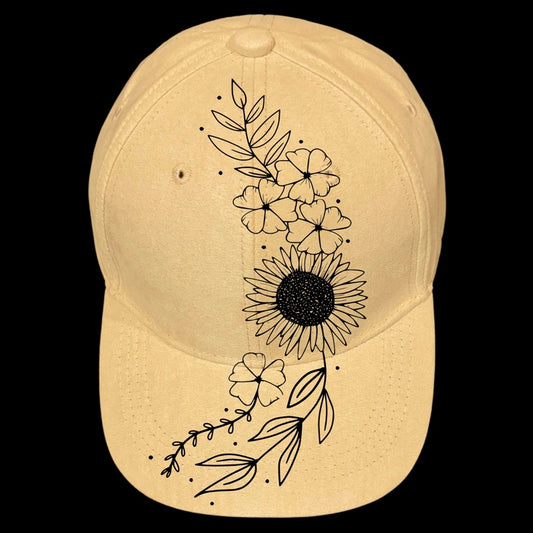 Sunflower Floral Spray Baseball Cap Hat Burning Design SVG PNG