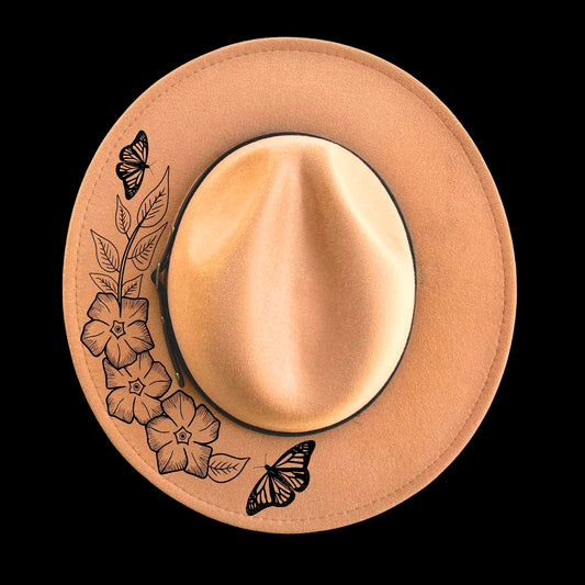 Butterflies & Periwinkle Narrow-Brim Hat-Burning Design | Cool Moon Designs