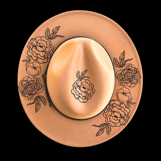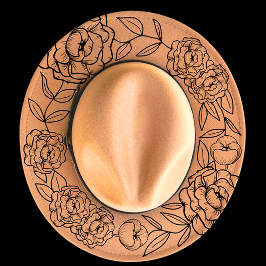 Fancy Peonies Hat-Burning Design | Narrow Brim | Cool Moon Designs