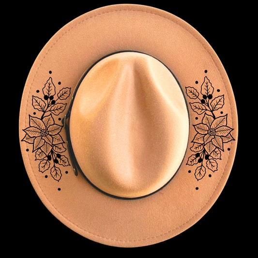 Poinsettia & Holly Narrow Brim Hat Burning Design | Cool Moon Designs