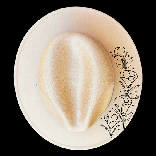 Poppies Blooming Narrow Brim Hat Burning Design | Cool Moon Designs