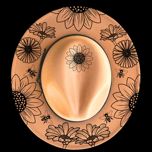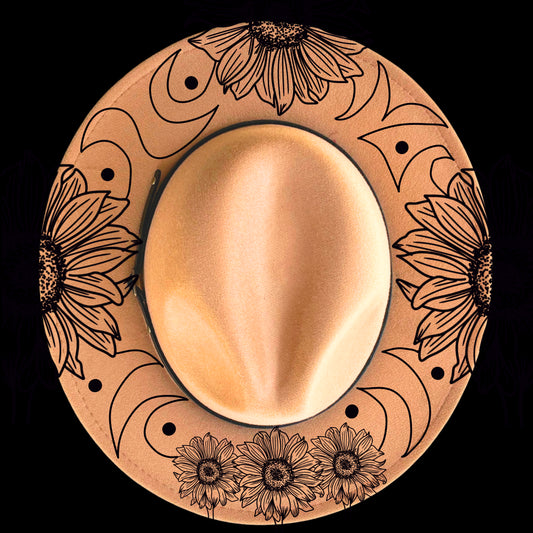 Sunflower Motif Narrow Brim Hat Burning Design | Cool Moon Designs