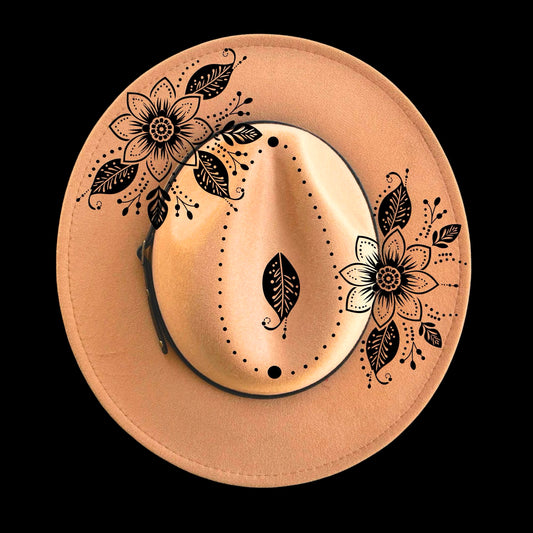 Tribal Flowers Narrow Brim Hat Burning Design | Cool Moon Designs