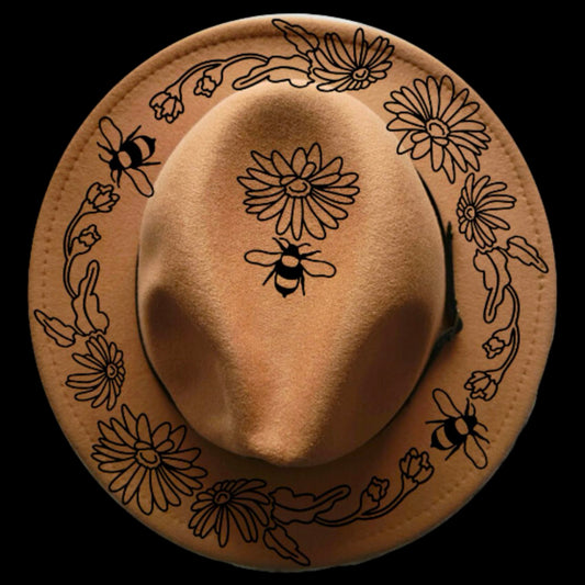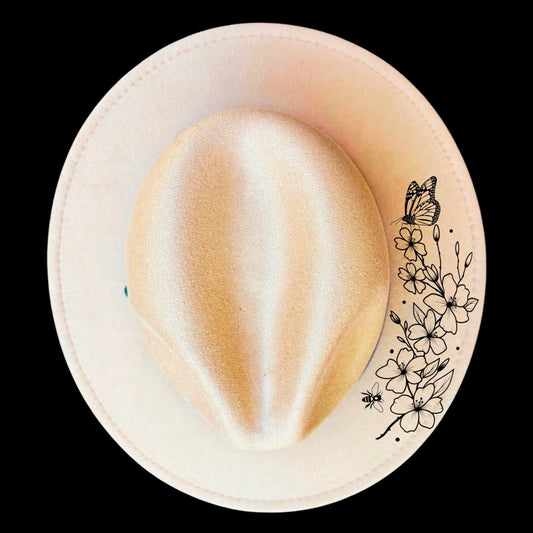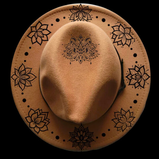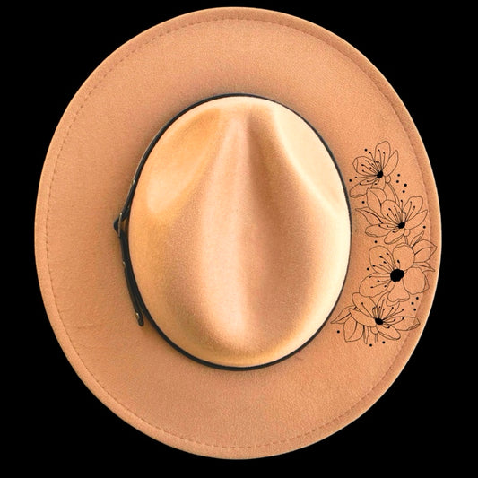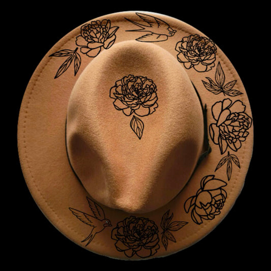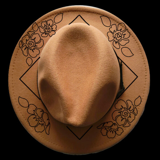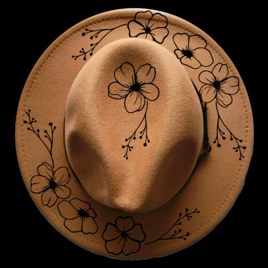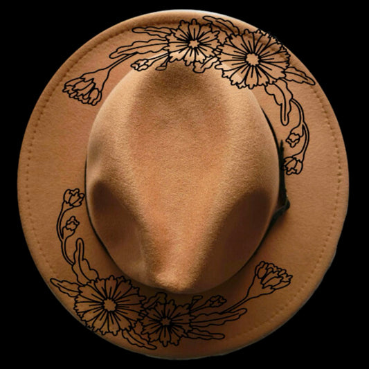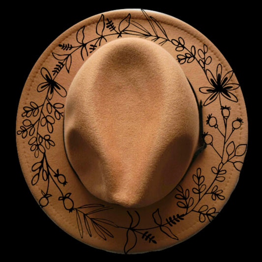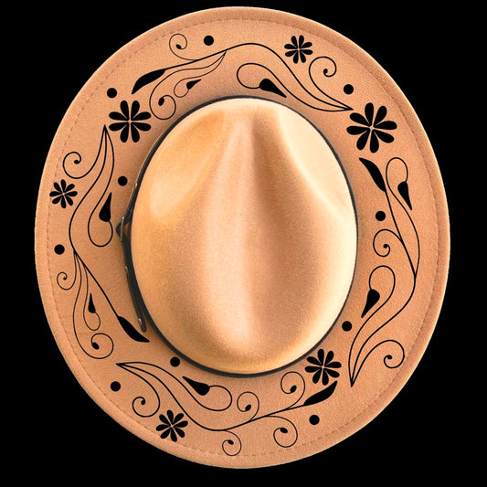 Swirls & Flowers Narrow Brim Hat Burning Design | Cool Moon Designs