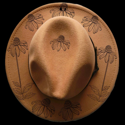 Coneflower Narrow Brim Hat Burning Design | Cool Moon Designs