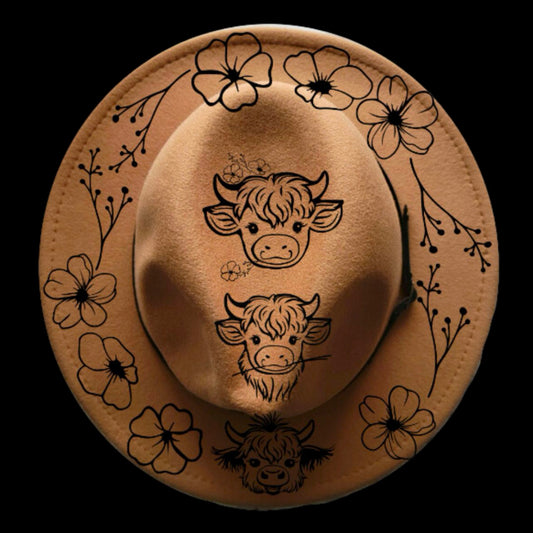 Highland Cow Flowers Hat Burning Design | Cool Moon Designs