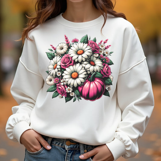 Pumpkin Fall Flowers Digital Design PNG
