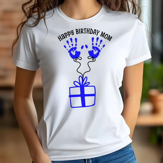 Happy Birthday Mom Blue Handprints Digital Design PNG