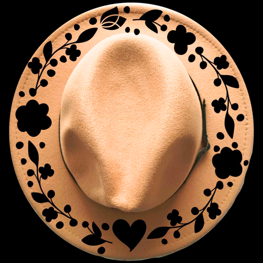 Floral Heart Vine | Narrow Brim Hat Burning Design | Cool Moon Designs