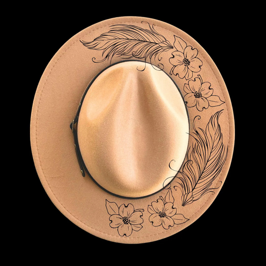 Dogwood & Feathers | Narrow Brim Hat Burning Design | Cool Moon Designs