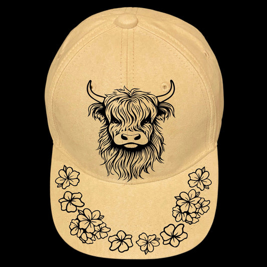 Cute Highland Cow Baseball Cap Hat Burning Design SVG PNG