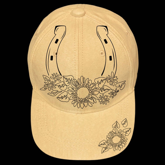 Horseshoe And Sunflowers Baseball Cap Hat Burning Design SVG PNG