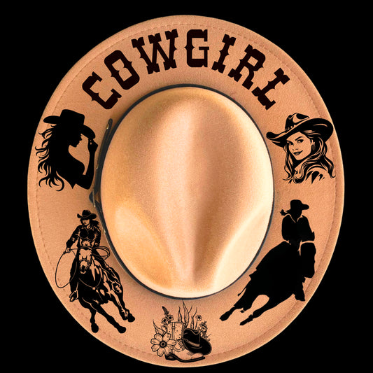 Cowgirl Narrow Brim Hat Burning Design | Cool Moon Designs