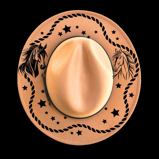 Horses in Rope Narrow-Brim Hat Burning Design | Cool Moon Designs