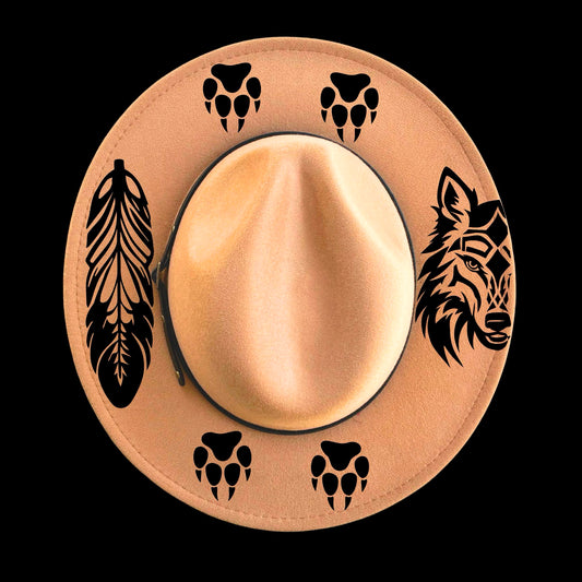 Tribal Wolf Narrow Brim Hat Burning Design | Cool Moon Designs