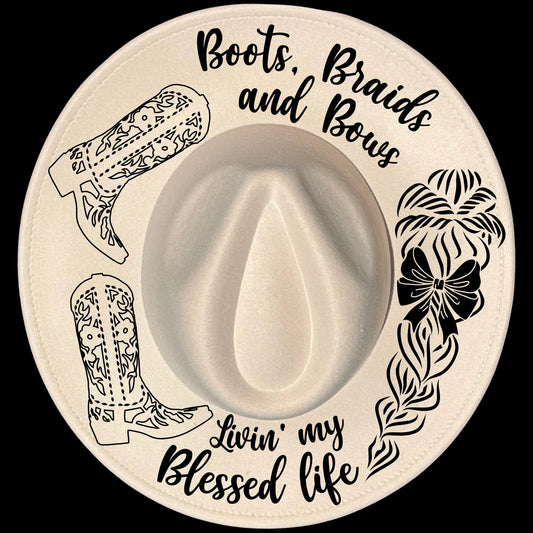 Boots, Braids & Bows Wide Brim Hat Burning Design SVG PNG