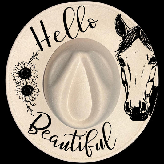 Horse And Sunflowers Wide Brim Hat Burning Design SVG PNG