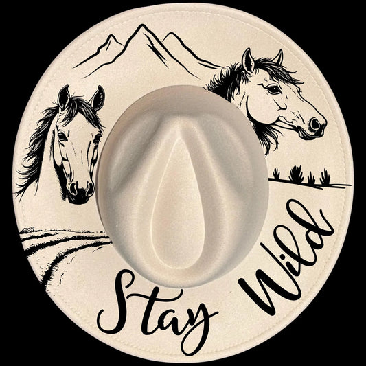 Stay Wild Horses Wide Brim Hat Burning Design SVG PNG