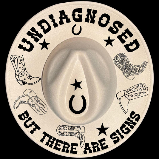 Undiagnosed Cowgirl Boots Wide Brim Hat Burning Design SVG PNG JPG
