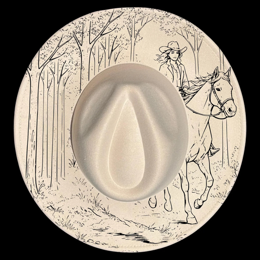 Girl on Horse Hat Burning Design | Wide Brim Hats | Cool Moon Designs