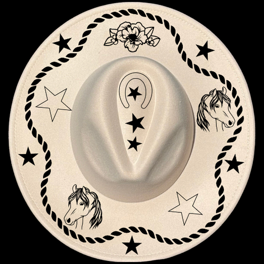 Stars Rope Pony Wide-Brim Hat Burning Design | Cool Moon Designs