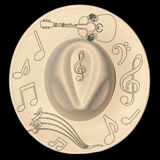 Guitar Music Wide Brim Hat Burning Design | Cool Moon Designs