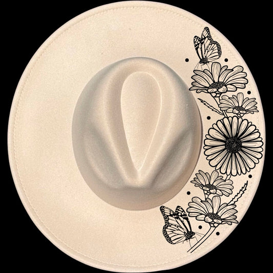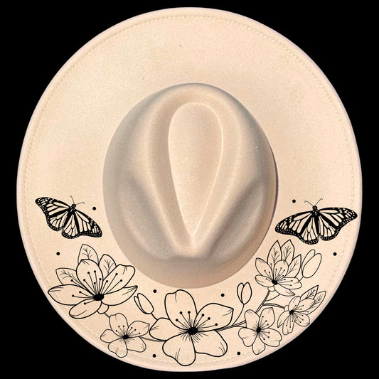 Cherry Blossoms Butterfly Wide Brim Hat Burning Design SVG PNG