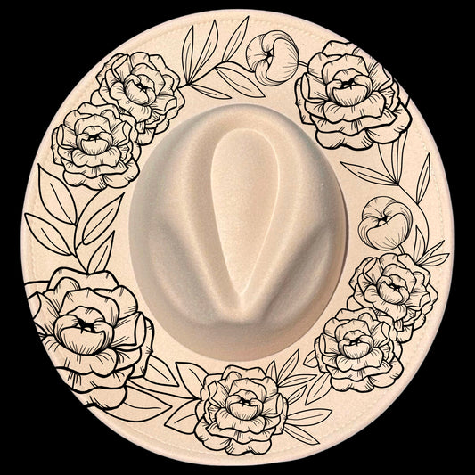 Peonies Wreath Wide Brim Hat Burning Design SVG PNG