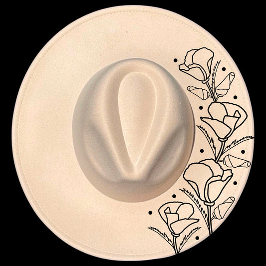 Poppies Blooming Wide Brim Hat Burning Design SVG PNG