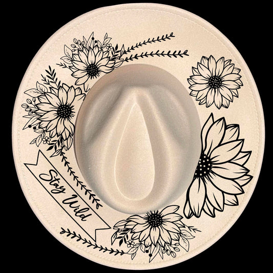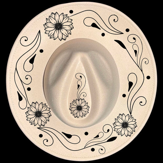 Swirls And Sunflowers Wide Brim Hat Burning Design SVG PNG