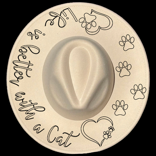 Life Is Better With A Cat Boho Wide Brim Hat Burning Design SVG PNG