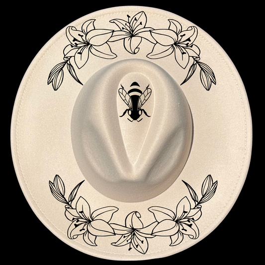 Lily Wreath With Bee Wide Brim Hat Burning Design SVG PNG
