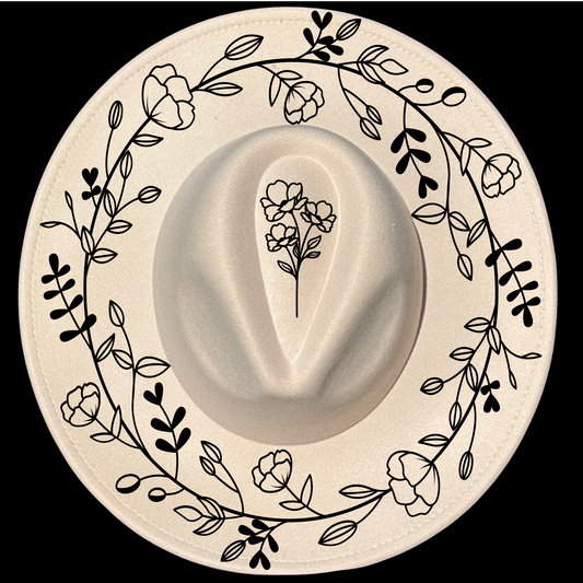 Poppy Wreath Wide Brim Hat Burning Design SVG PNG