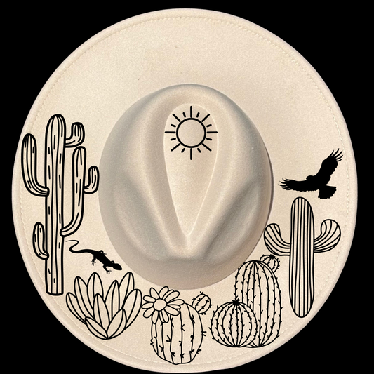 Desert Cactus Wide Brim Hat Burning Design SVG PNG