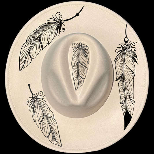 Boho Feathers Wide Brim Hat Burning Design SVG PNG