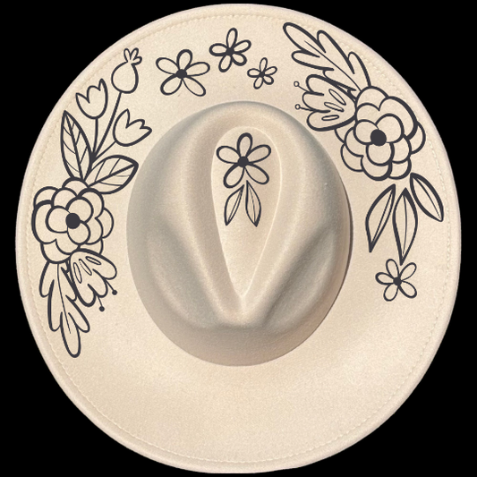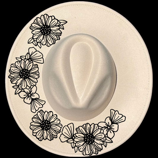 Floral Spray Wide Brim Hat Burning Design SVG PNG