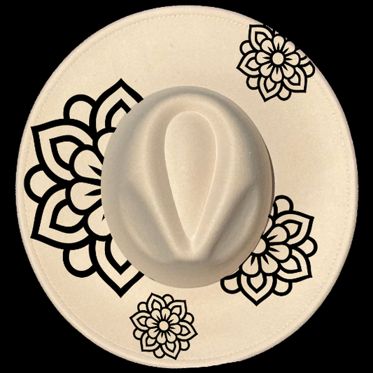 Henna Flowers Wide Brim Hat Burning Design SVG PNG